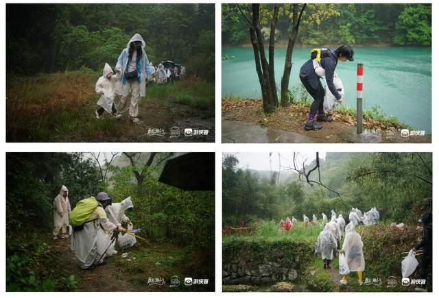 真正的户外爱好者,不会让垃圾成为山野的“纪念品”,即使徒步旅程在大雨中难度增大,也没有浇灭守护者的热忱。