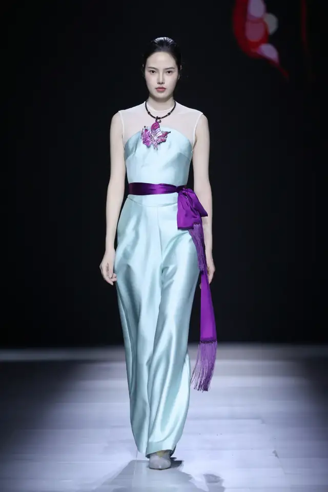 本次发布会服饰裁剪方面均由手工裁剪、立裁来完成贴合人体曲线的女装服饰。服装工艺秉持着苏工匠心的初心,一针一线手工定制而出。华丽的服饰经由数十个日日夜夜通过钉、盘、绕等手工来得以呈现。