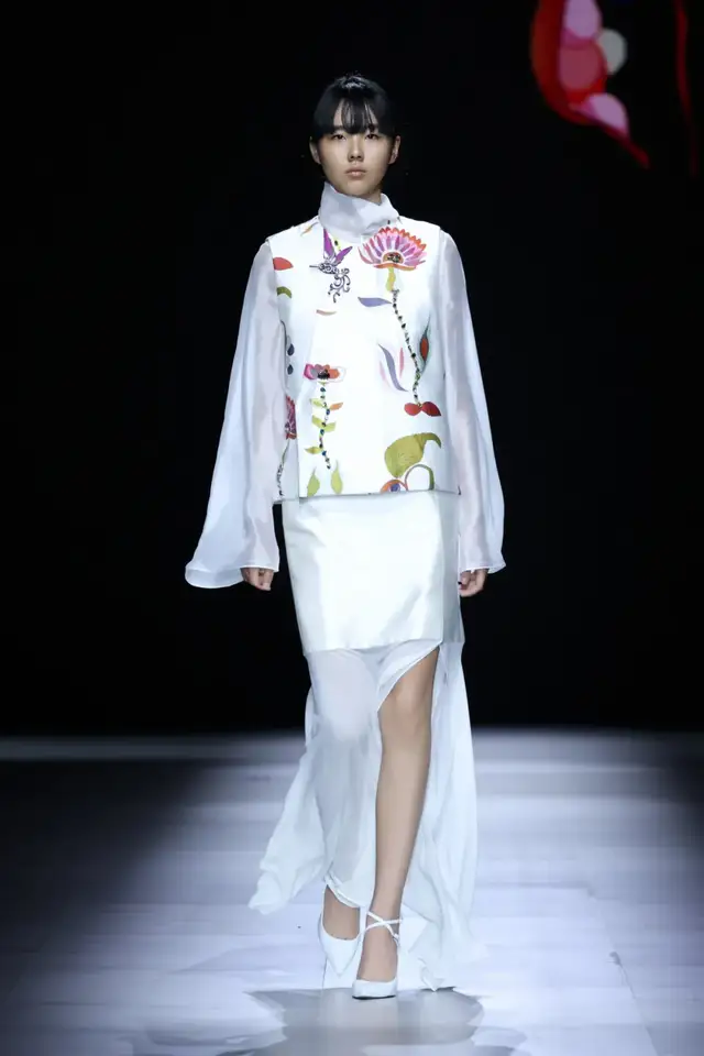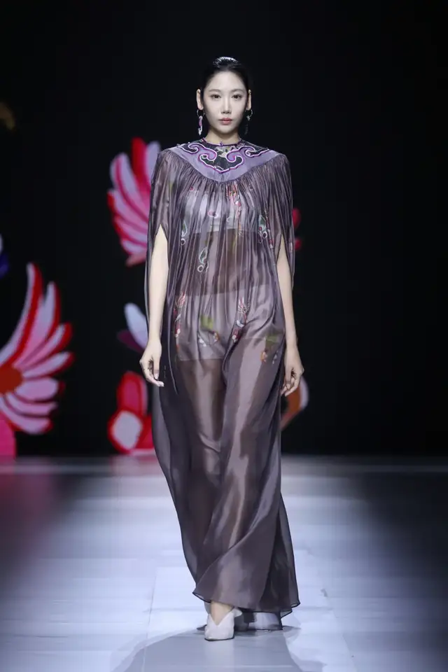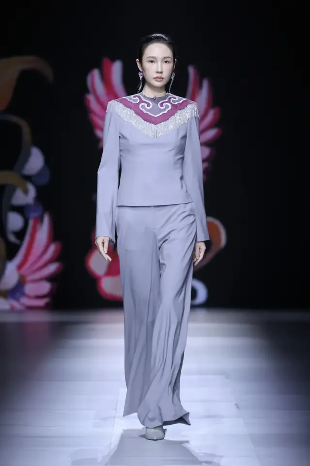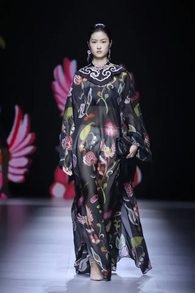 本季发布以 “云络万象” 为核心脉络,溯源清代云肩的古典意蕴汲取设计灵感,将传统纹样从历史肌理中提炼,巧妙融入当代时装语境。不局限于纹样的简单复刻,更以其为叙事载体,让动物花卉等传统符号转化为可穿戴的时尚语言,在剪裁与材质的碰撞间,串联起古今穿戴美学的脉络,织就兼具东方雅致与现代摩登的独特风格,让传统美学在当代时装中焕发新生。