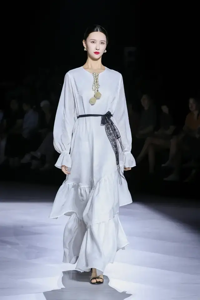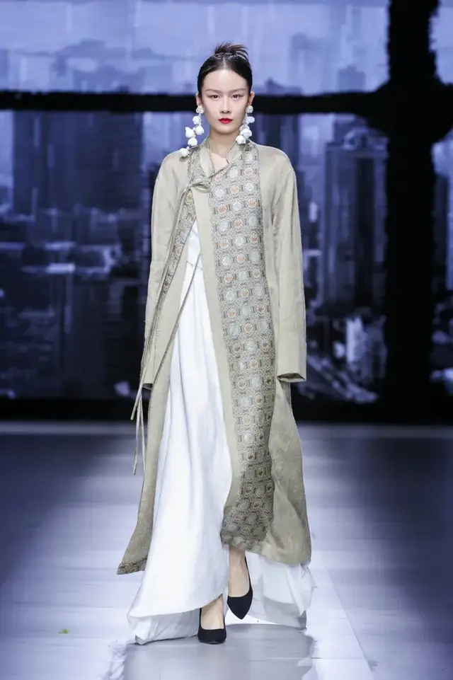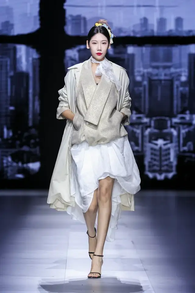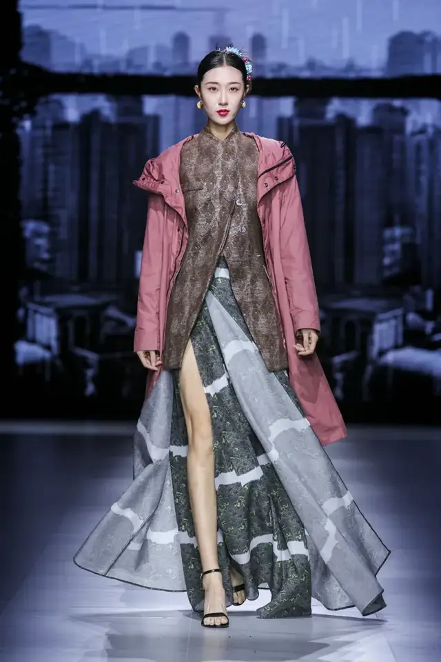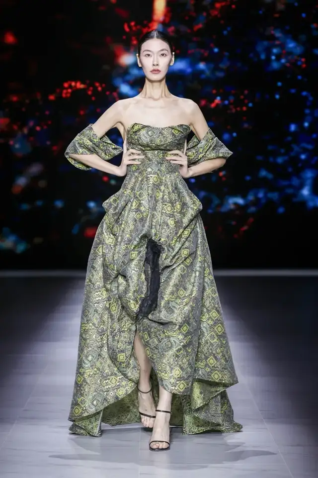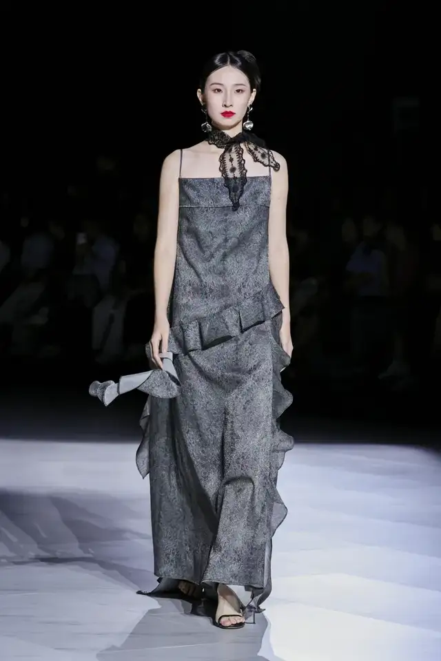 此次发布主题繁花,灵感来自福建泉州非遗簪花,当地“以簪花为美”的世代风俗,将这项非遗技艺的理念和文化元素延伸到当代时装,面料采用提花工艺,以及不同花型的提花织造来表现,并加入印花、绣花、剪花等工艺,色彩以黑白基调为主,穿插印花图案的面料和工艺,使整个系列古典又不失潮流时尚之感。