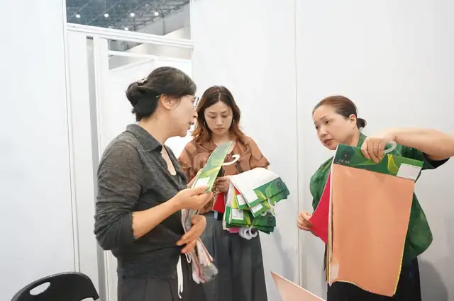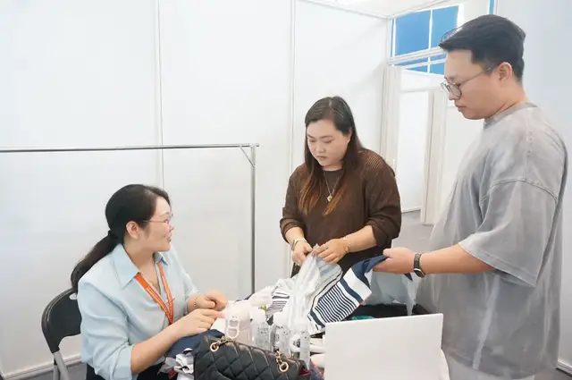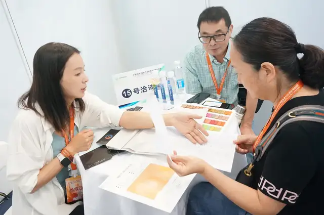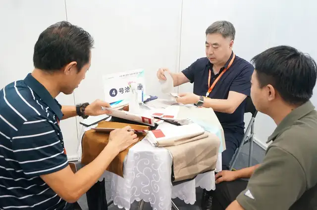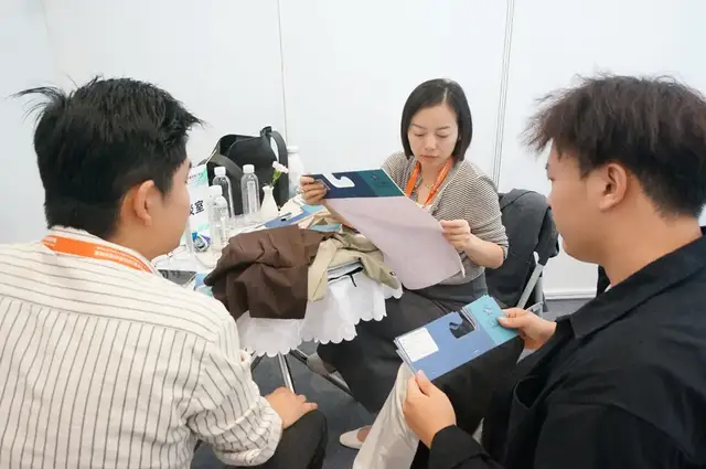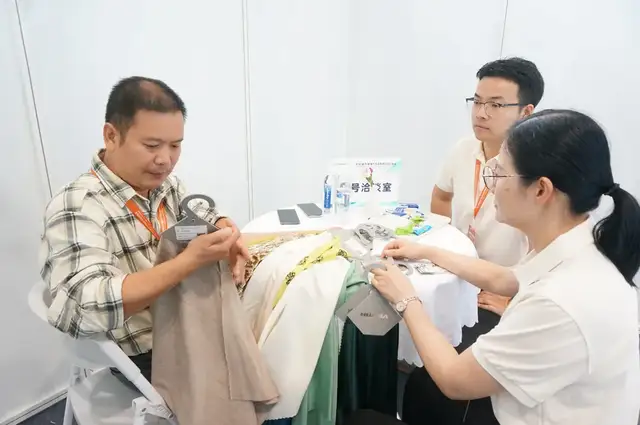 广东富绅服饰有限公司采购总监陈爱兰则是第一次参加对接会。有着三十多年发展历史、主做男士正装、商务装的富绅,之前合作的盛泽面料供应商主要提供西装里布,这次目的是想找适合男士、女士的易打理、可机洗、高弹力复合面料,“以前我们主做男装,女装面料供应链比较缺乏,这次成功对接到了符合我需求的弹力面料厂家,还有最快能当天出货的印花厂家。也都约好了要去厂家再看看,确保色牢度、缩水率、耐磨性等都达标,这也是我爱到面料源头地采购的原因。”