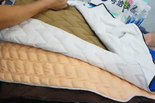 而供应商方面,苏州博航超声波绗棉厂业务经理周晓云与九家需求企业进行了交流,带来的展示样品也获得了他们的一致认可:“客户基本都表示对我们的产品很满意,与他们的需求合拍,也都加了微信,约好后续寄样。此外,有2家提出了现货快反需求,我们一台机器一天产量能到3000米,最快能做到当天交货,而且我们也用心考虑到了客户的谨慎心理与小单需求,几米的打样、试单,我们也可以接。”