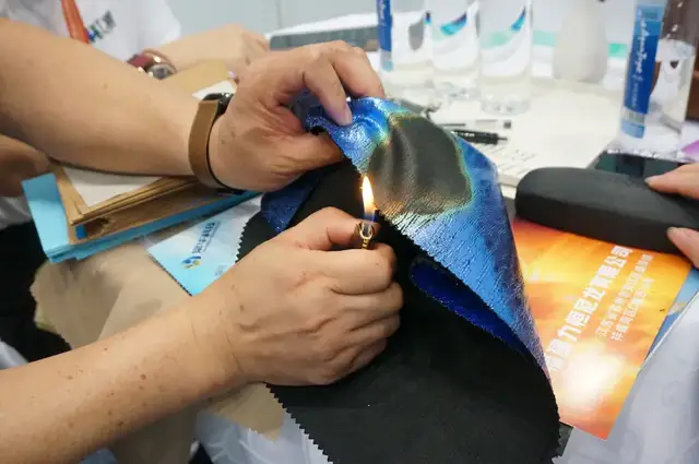 “我们现在对接了八家企业,有户外的,有做防护类工装的,其中,户外客户非常认可我们的一款肤感非常好、可以替代皮质的风衣面料,而工装客户则对我们的防火面料给予了高度好评。”说着,苏州棠华纳米科技有限公司张仁海掏出打火机现场演示,让我们亲眼看到了防火面料的防火性能之卓越,“我们可以做到性能媲美国际,但价格只有国外的十分之一。”