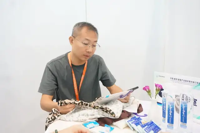 已经第三次参加对接会的山东耶莉娅服装集团有限公司采购部经理王宝坤分享了他的现场收获:“我们之前两次参加的收获都很大,这次继续过来,主要是想采购羽绒服、冲锋衣面料,到这会儿已经对接了六家企业,也挑了一些产品功能性比较强、外观风格比较好、定位中高端的面料,企业价格、交期方面也都能满足我们的要求。”