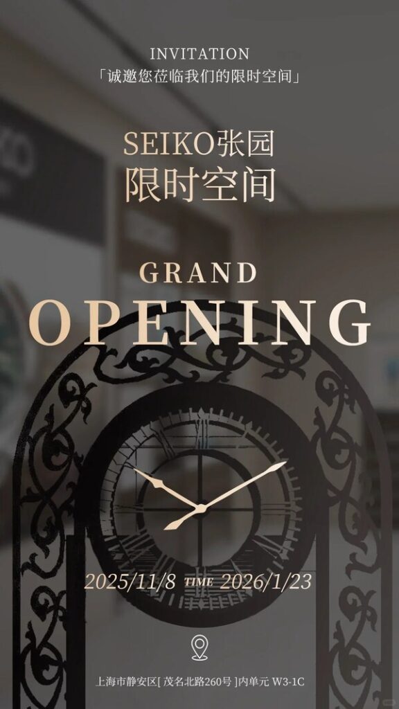 因此在金秋时节,2025年11月8日至2026年1月23日,SEIKO(精工)选择在上海张园开启了全新限时空间——这是一封来自时间的”回信”,邀你共同开启。