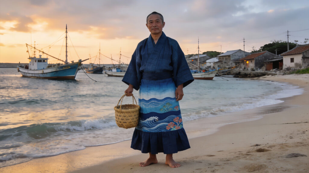 靛蓝(海之色):是庶民服饰的主流色彩,染料由琉球特有植物车轮梅发酵制成,色调沉静如海洋,既贴合庶民的生活场景,也暗含对大海的敬畏与依赖。