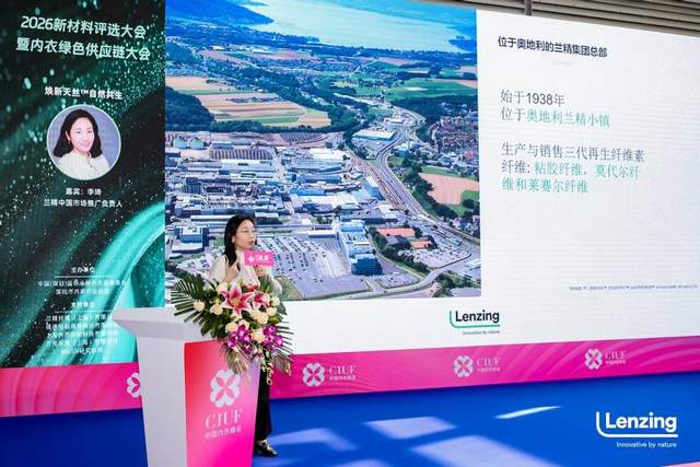 在展会同期的2026新材料评选大会暨内衣绿色供应链大会上,兰精中国市场推广负责人李琦发表《焕新天丝™,自然共生》主题演讲。“天丝™品牌纤维是屡获殊荣、绿色环保、高舒适度的材料。”李琦介绍,天丝™莱赛尔和莫代尔纤维来自天然可再生木源,取材于负责任管理的森林,不仅触感柔软、穿着轻便,生命周期结束后还能自然分解、堆肥,回归自然。根据相关数据统计,超过80%的中国消费者认为含有天丝™纤维的产品值得以更高价格购买,这不仅印证了品牌的高端定位,更释放了整条价值链的定价与利润优势。