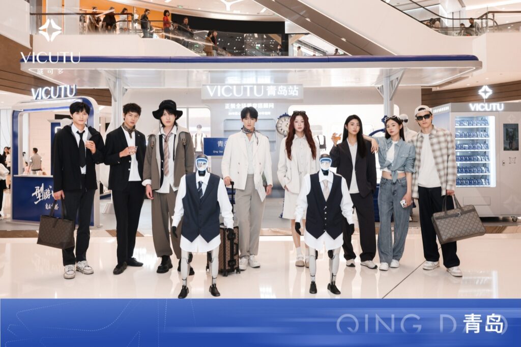 商圈作为都市生活的“流量中心”,见证过无数人的驻足与流转。VICUTU本次选择跳出静态快闪的常规框架,在青岛万象城里打造了一场活力爆棚的沉浸式时装秀场。身着VICUTU旅型西服的模特与科技感十足的机器人相继登场,强烈的视觉反差碰撞出潮趣张力,让整个场子瞬间“燃”了起来。