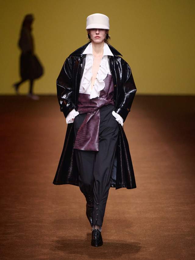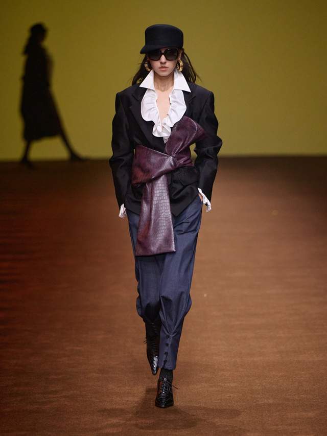 · 荷叶领的力量新生:本季的荷叶领不再是单纯的甜美符号,而是被赋予建筑般的结构感。可拆卸的多功能设计,让这一经典元素焕发新生。