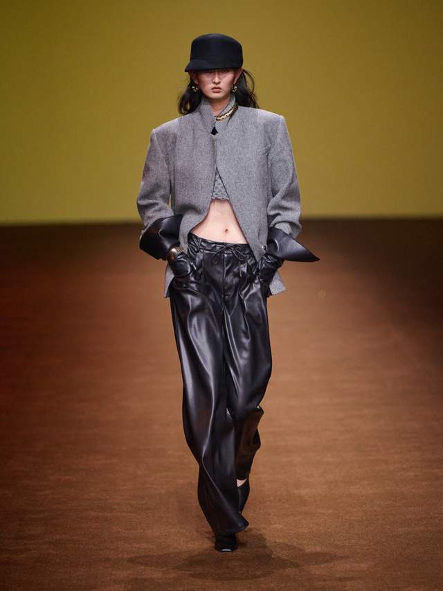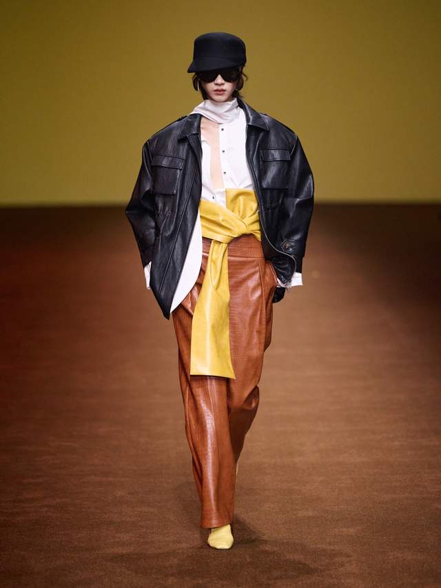 · 柔韧皮革的立体塑形工艺:我们采用高品质人造PU皮,通过特殊的复合工艺与热压技术,赋予其如天然皮革般的温润质感与奢华肌理,同时实现了媲美针织面料的舒适延展性。这种创新材质完美承载本季标志性的掐腰与oversized廓形,让皮革在保有型格的同时,呈现出如第二层肌肤般的流动感和雕塑感。通过特殊热压工艺,让坚毅的皮革呈现出如第二层肌肤般的流动感,完美承载本季标志性的掐腰与oversized廓形。