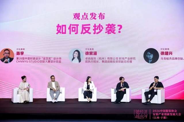 在下午的观点发布环节,来自品牌、平台、设计、供应链、关联企业等15位实战嘉宾直面行业最真实、最尖锐的三道“考题”:如何破“内卷”?如何反抄袭?如何应对“高退货率”?以“观点发布+圆桌讨论”的形式,进行了一场场不回避、不空谈、有锐度的深度对话,在有限的时间里,碰撞出了可落地、可复用的解法。